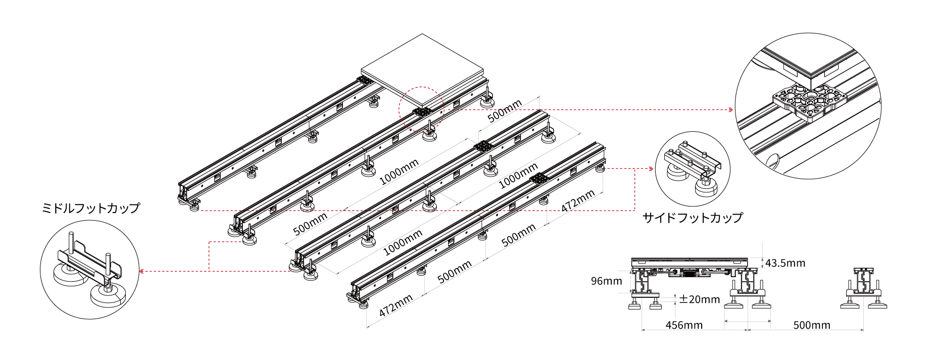 - 耐荷重最大2t/㎡のカーボンファイバー成型筐体